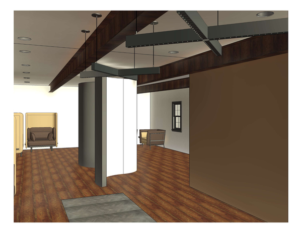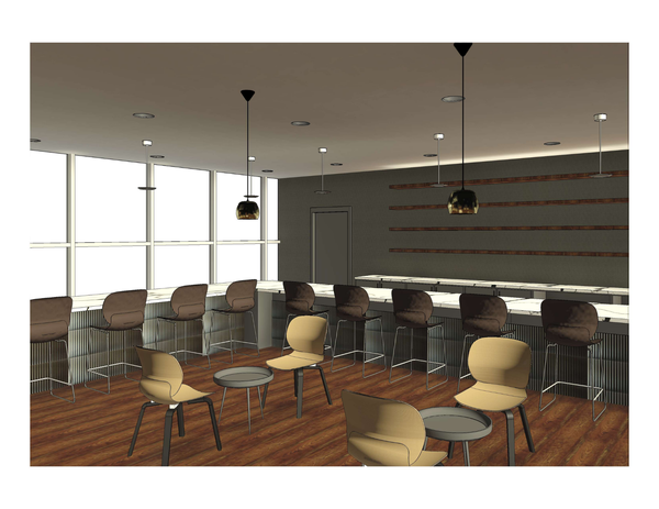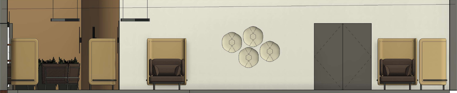 From the initial concept, I knew I wanted to incorporate abundant natural and living elements into the design, along with additional full-glass walls to complement the building's existing glass façade. These features were essential in helping the space feel connected to the natural world despite its industrial surroundings. I envisioned the lobby and community areas being filled with daylight, allowing guests to enjoy a bright, uplifting atmosphere during the day and expansive views of the city at night. As the design progresses, I plan to introduce softer, low-level lighting and further develop the interiors to evoke the cozy warmth of a wooded cabin—creating a sense of connection to nature even within the heart of the industrial district.