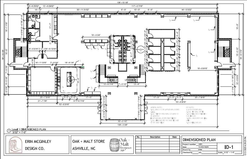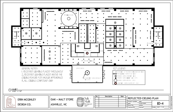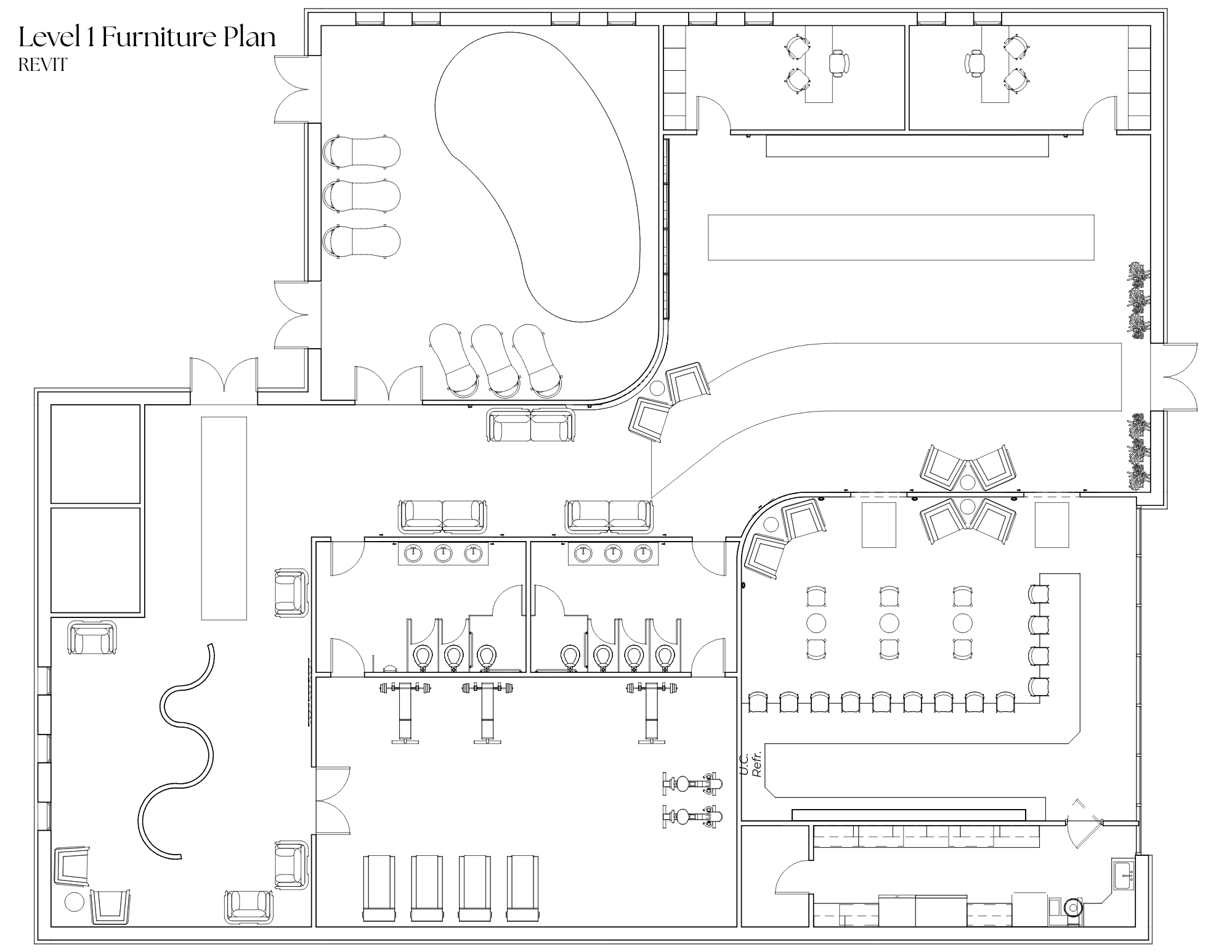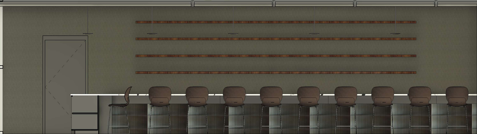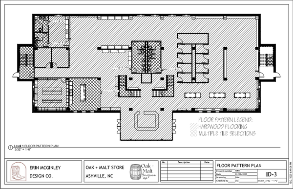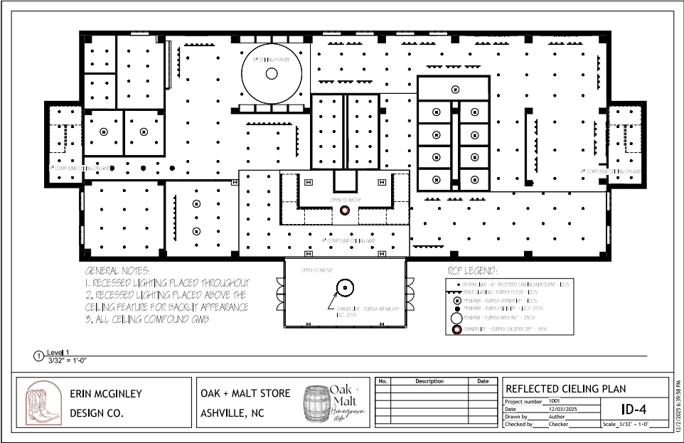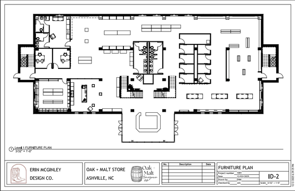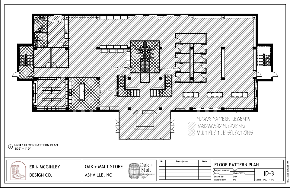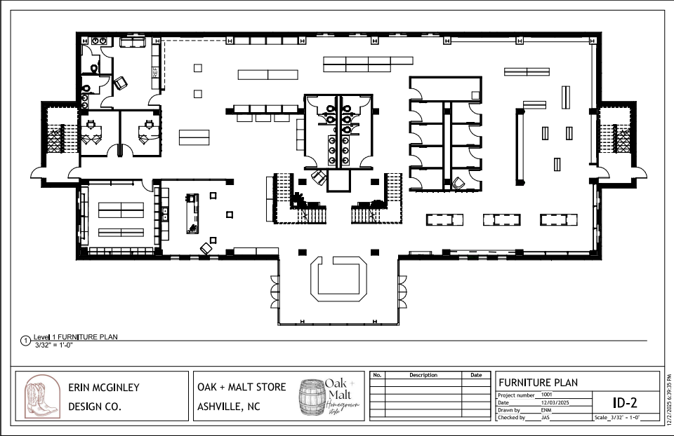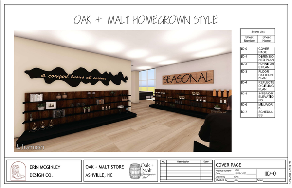 This was my first project completed in Revit, and I found the software incredibly helpful—especially since hand-drawing is not my strongest skill. Revit allowed me to clearly translate my ideas into the design and showcase the 3D modeling, while still giving me space to continue practicing hand-drafting on other projects. A major focus of this design was sustainability, with an emphasis on sourcing goods from local vendors to support the surrounding community. I also prioritized universal design to ensure the space would be comfortable and accessible for all customers. This store is intentionally not targeted toward a specific demographic; instead, I imagined a diverse clientele—men and women, young and old—anyone who appreciates a western aesthetic and is looking for a place that feels welcoming and inclusive.