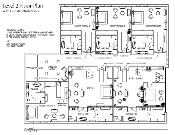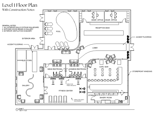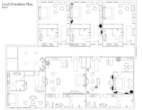 This project is a submission for the Hospitality Industry Network (NEWH) Green Voice Design Competition. Centered on adaptive reuse and healthy materials, the challenge requires transforming an existing commercial building into a functional hotel. Material selections emphasize sustainability, prioritizing LEED-certified products and environmentally responsible finishes. Innovation and sustainability are key drivers of the design, with a strong focus on energy management, water conservation, and indoor air quality. As designers, we aim to contribute to ecotourism—creating spaces that positively impact the communities we serve rather than harm them. The required program includes a lobby/check-in area and two guest room designs. I expanded the program to also feature a fitness center, gallery, indoor pool, and garden space.