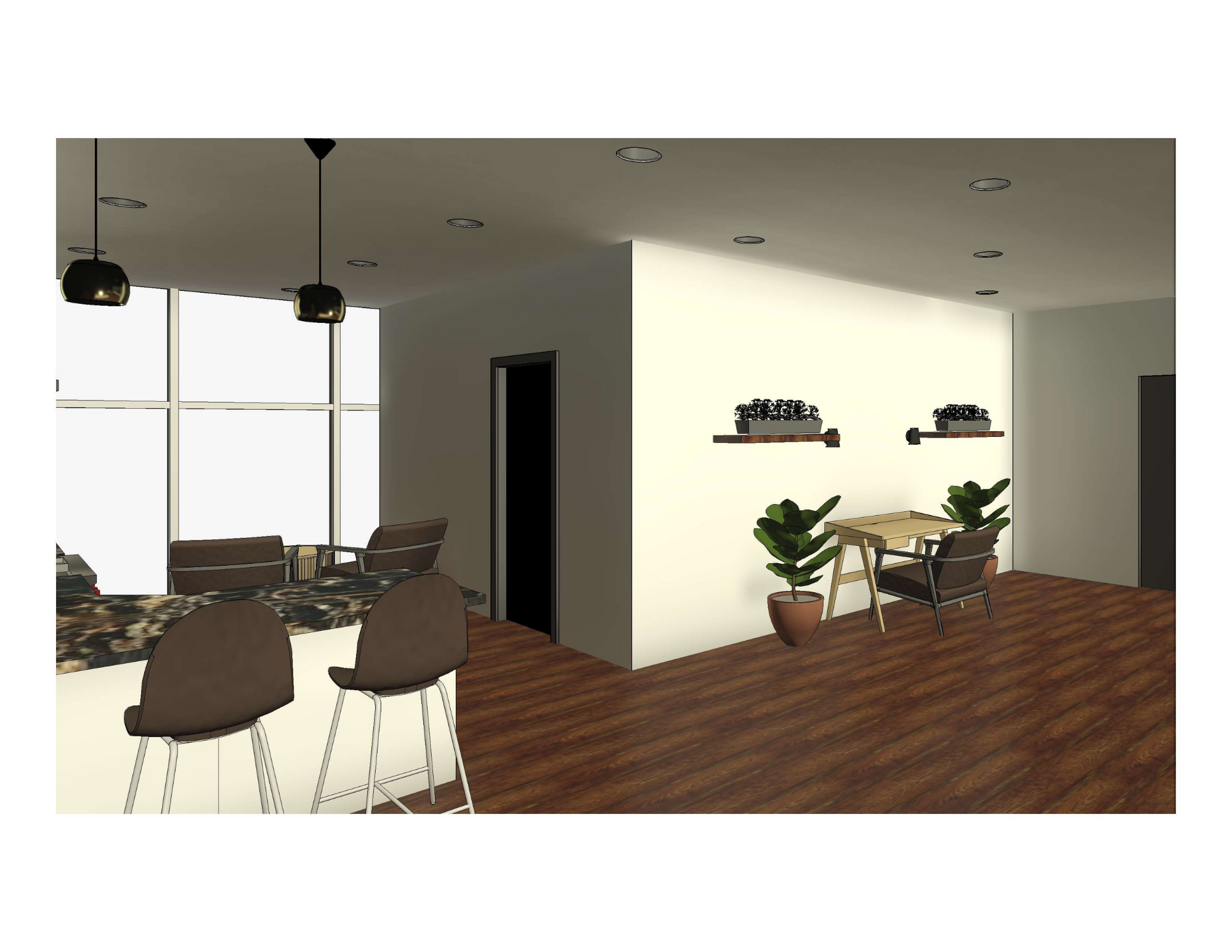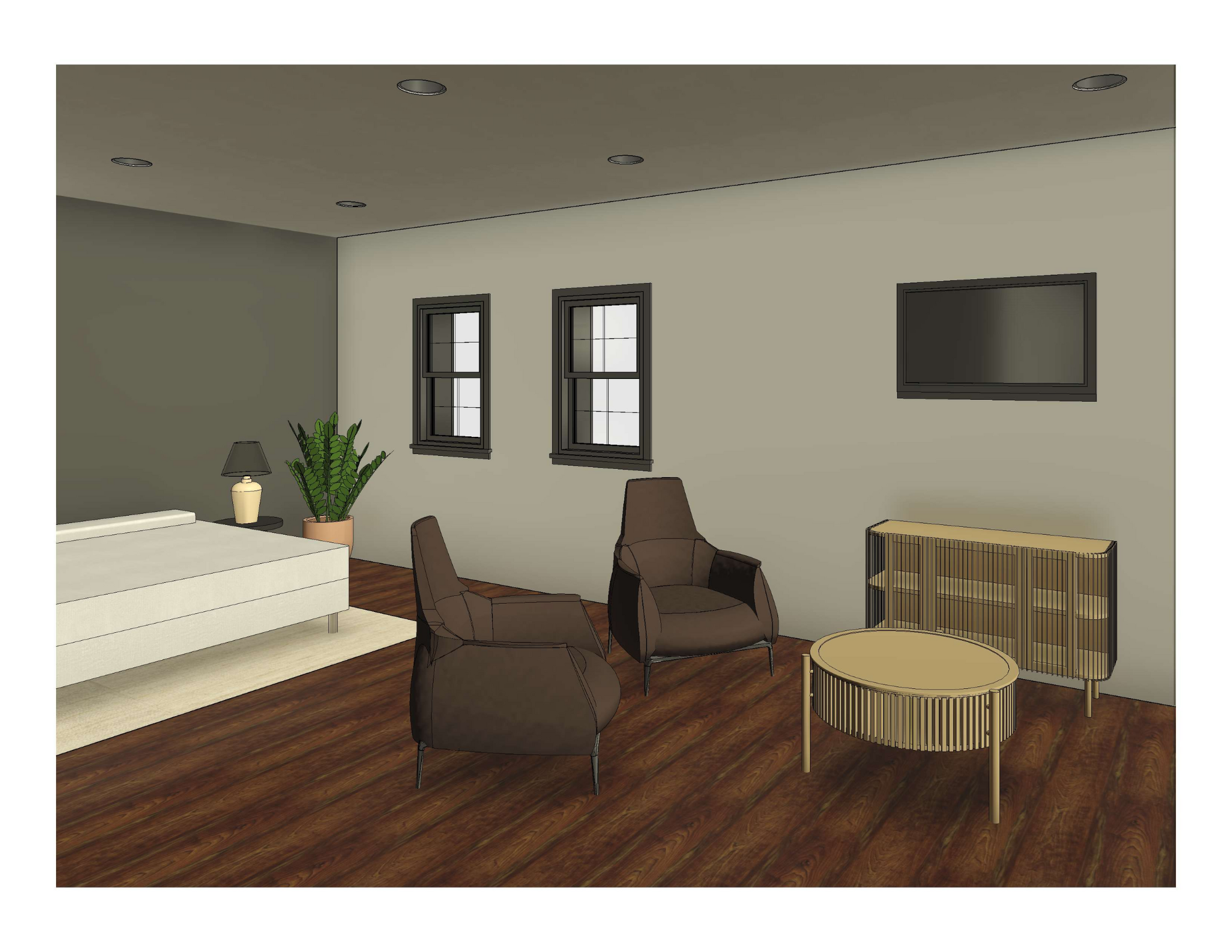 This project was designed with accessibility at the forefront of every decision. The concept centered on creating a duplex for a multi-generational family. Suite B houses the Millers—a young couple with their five-year-old daughter—while Suite A is home to the Johnsons, an older couple with a husband who uses a wheelchair. During space planning, I ensured that every area within the Johnsons' residence was fully accessible to him, and because the families live side by side, I also made the Miller's suite as accessible as possible to support easy movement between the two homes. The residence is located in New Smyrna Beach, Florida, and the program requirements specified that each suite include a living room, kitchen, dining room, pantry, laundry area, storage, and a primary bedroom for each couple. Suite A also features an additional bedroom and bathroom for the Millers' daughter.