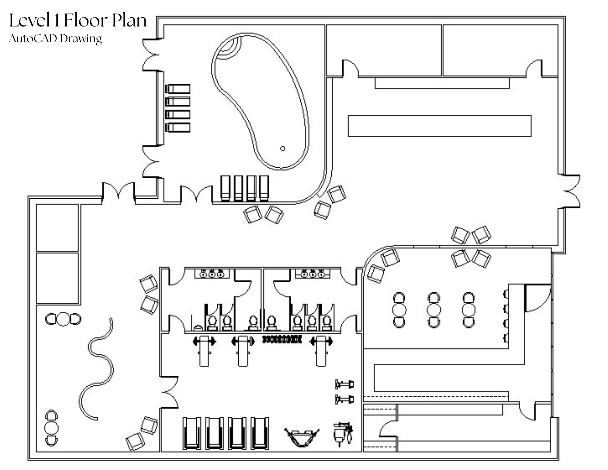 Programming was the most critical phase of this project, as I needed to ensure that walkways, spaces, and room dimensions supported accessibility in a truly functional way. Often, when we think of accessibility, we picture what's commonly found in commercial buildings—but those standards are not always practical for individuals with physical limitations in a residential setting. Door weights, pull-in areas, and turning radii may meet code, yet still fall short of providing real usability. Because of this, I conducted extensive research to ensure the residence would be genuinely accessible and tailored to the everyday needs of its occupants.